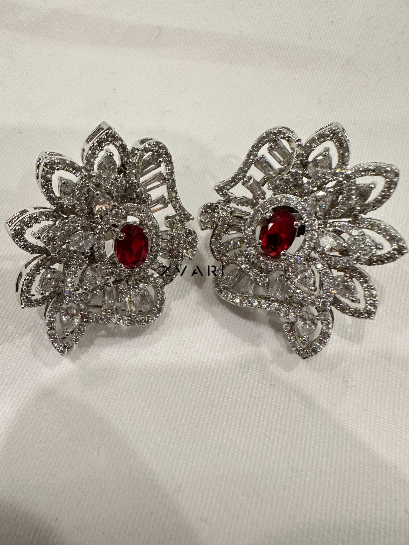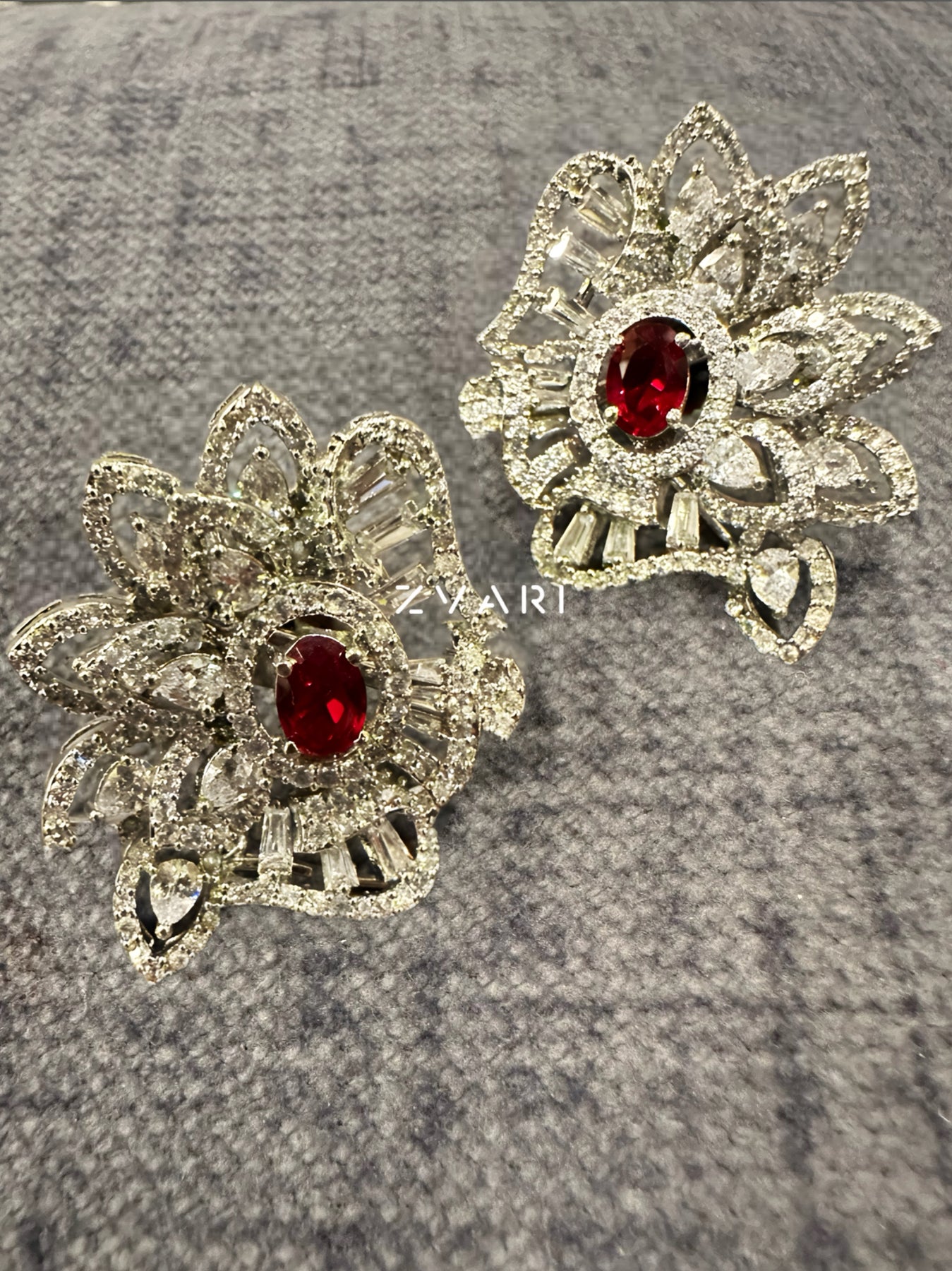 Let your style glow with these pretty cluster of American diamonds with red crystal stone in these 3D studs