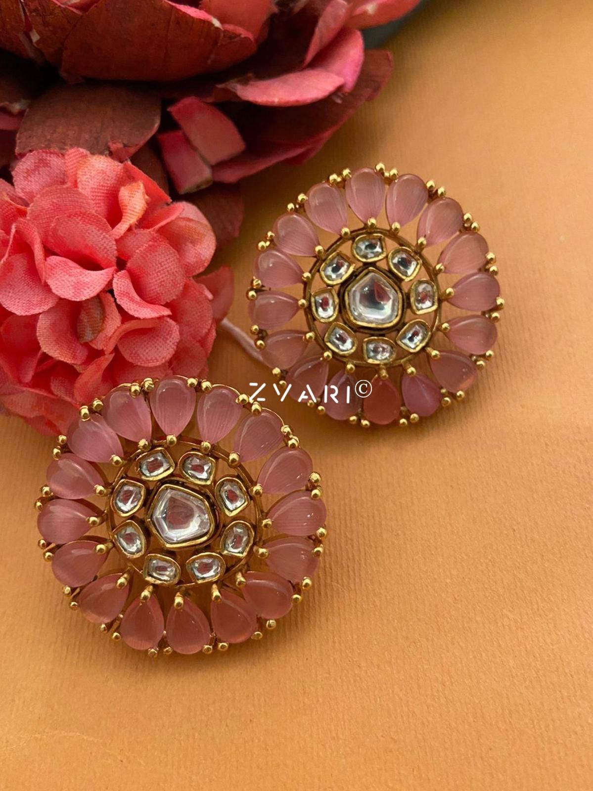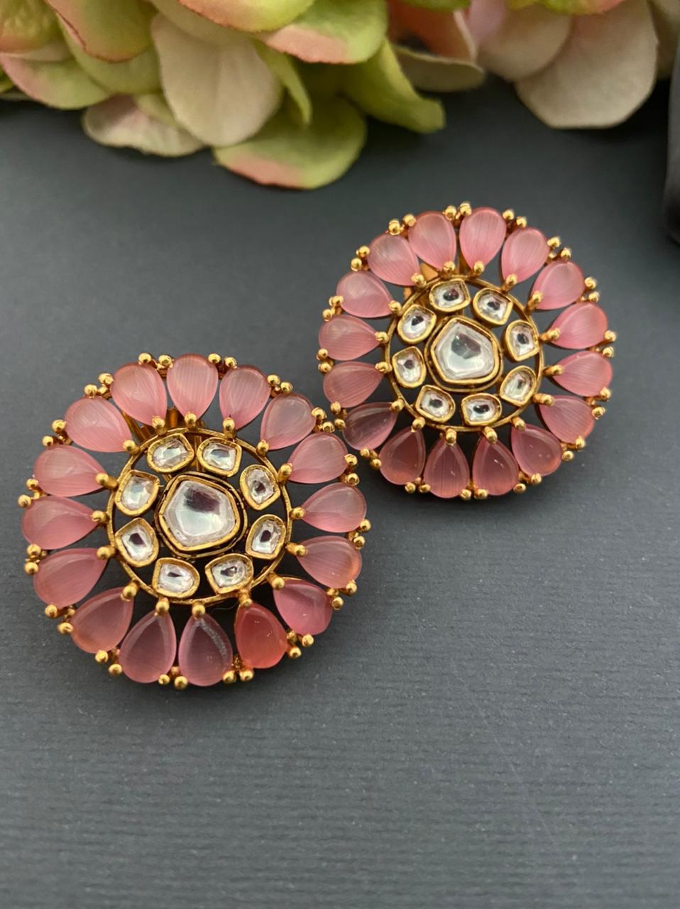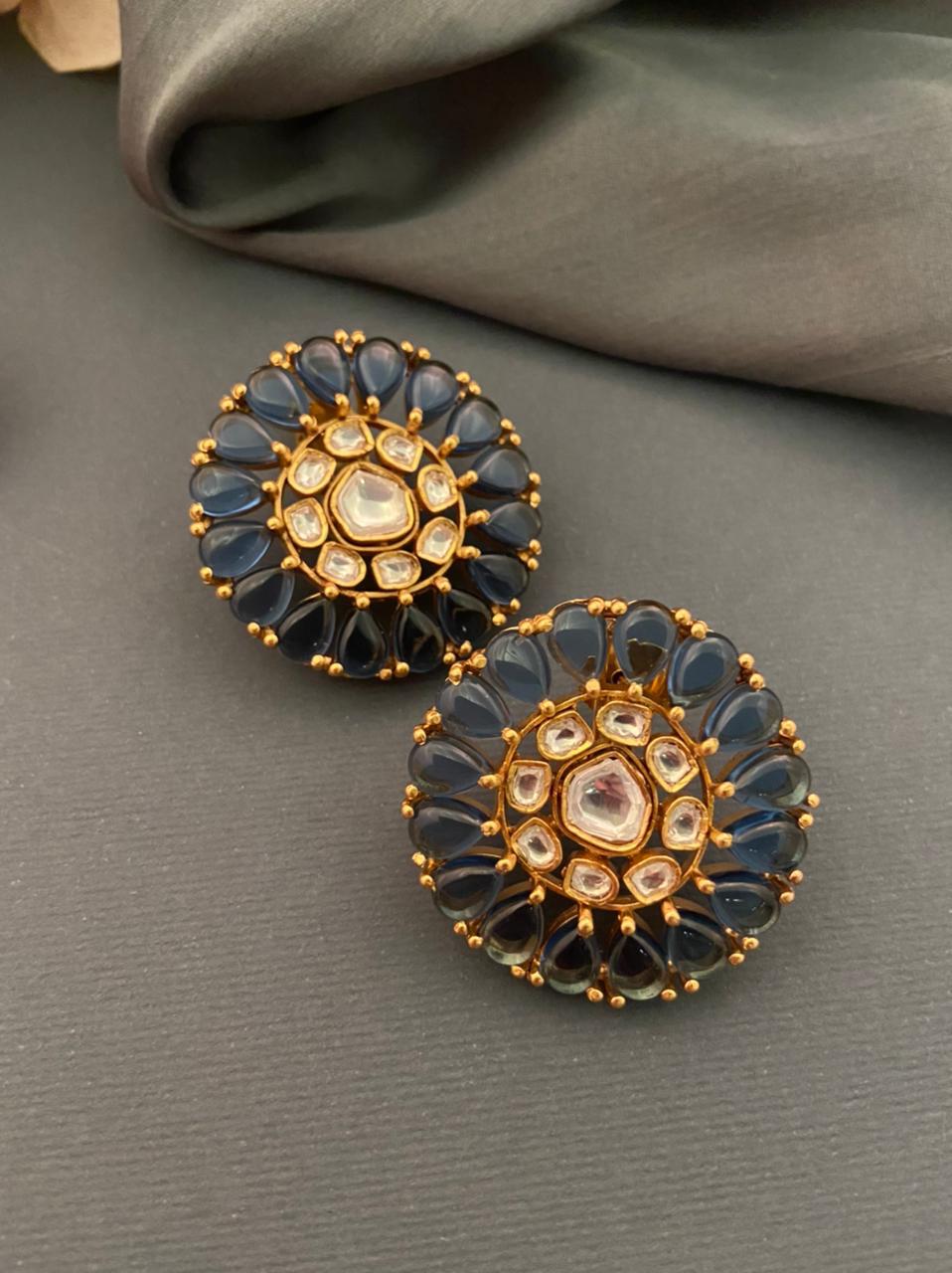 Take your look to the next level with our basic yet very stylish round Polki studs with semi precious stones.