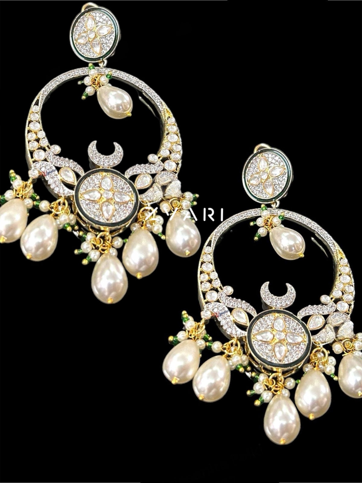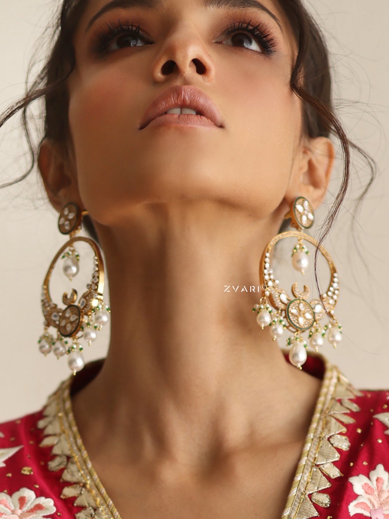 Gorgeously put together with American diamonds, Polki, meena and pearls, this 3.5 inches long earrings would give you the right amount of glam to make any outfit wow