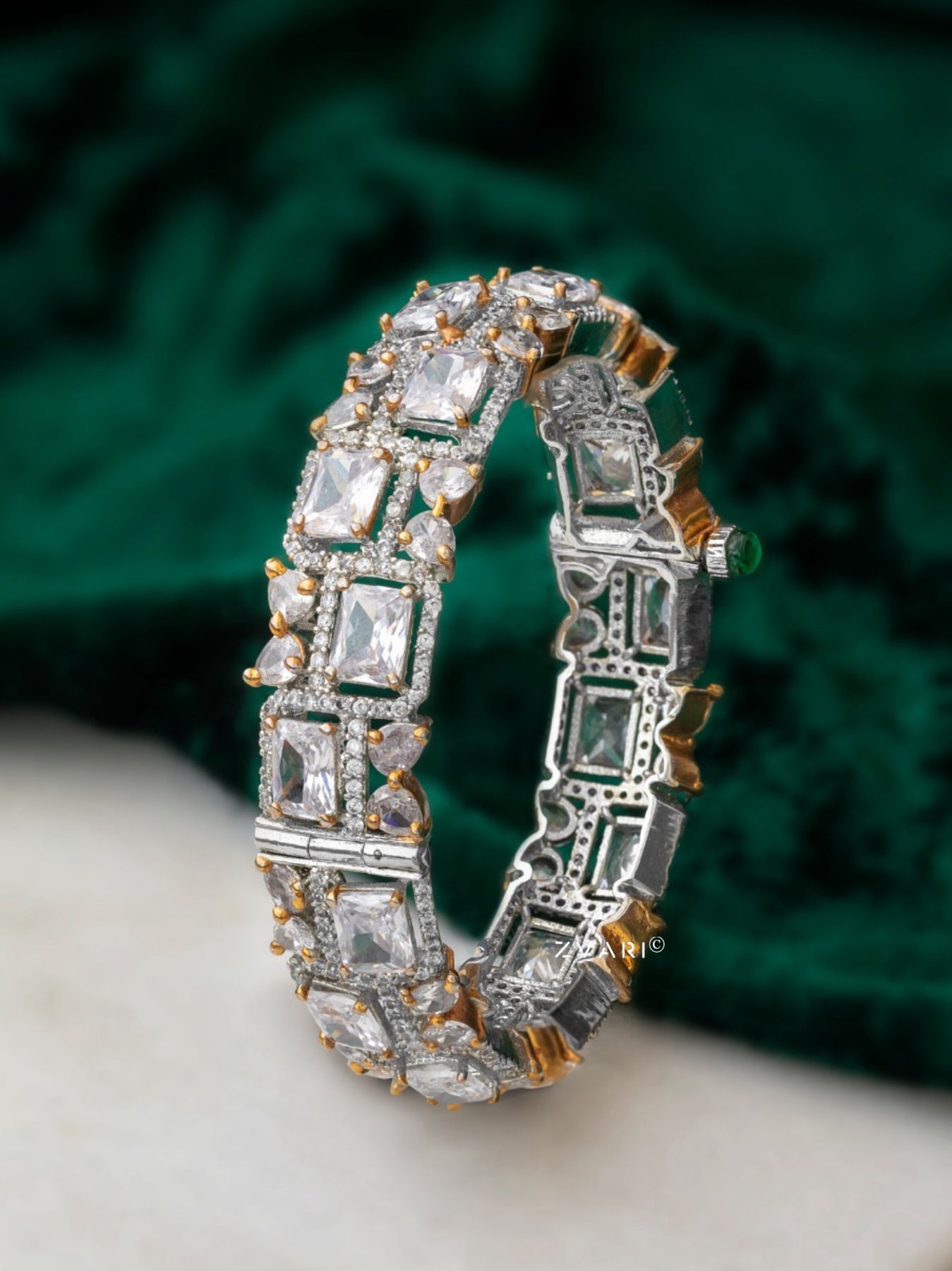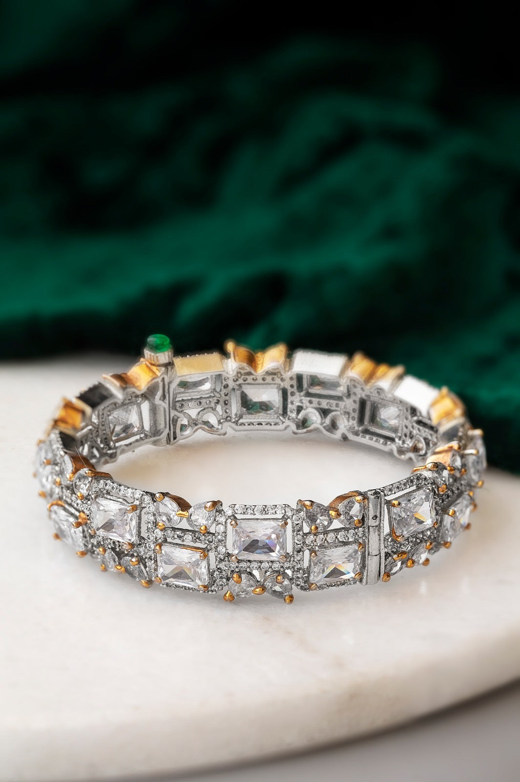 Crafted with shimmering glass crystals and accented zircons, this beautiful kada in size 2.5 features an elegant dual polish finish — a timeless blend of sparkle and sophistication